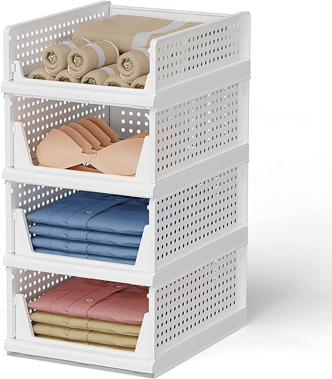 【Easy to Use】: Screw free shelving, No need for anyassembly, just place on top of each other for instant shelving;Adjust to your own liking by stacking the perfect number to fityour own space closet organizer for clothes almira organizersstorage